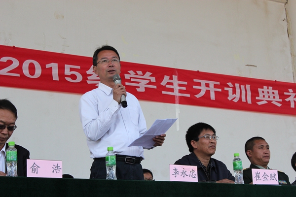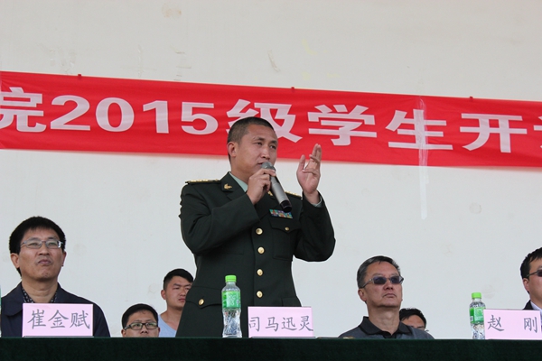 beat365在线唯一官网院长李永忠在讲话中,代表学院向承训的昆明民族干部学院各位领导、教官们表示衷心的感谢,向为军训辛苦工作的老师们和参加训练的同学们表示诚挚的问候!并对2015级的全体参训学生提出了几点要求:一是要求我们全体参训同学居安思危,牢固树立国防意识。二是向人民解放军学习,学习他们吃苦耐劳的优良品德,学习他们忠于党、热爱祖国的高尚情操。三是艰苦训练,努力在军事训练中增长才干。希望同学们们秉承“耕道、养德、理想、开拓”的校训精神,以理想为羽翼,开拓进取,在军训中磨练意志,锻造精神,在绿色的军营里尽情挥洒青春的热情与汗水!