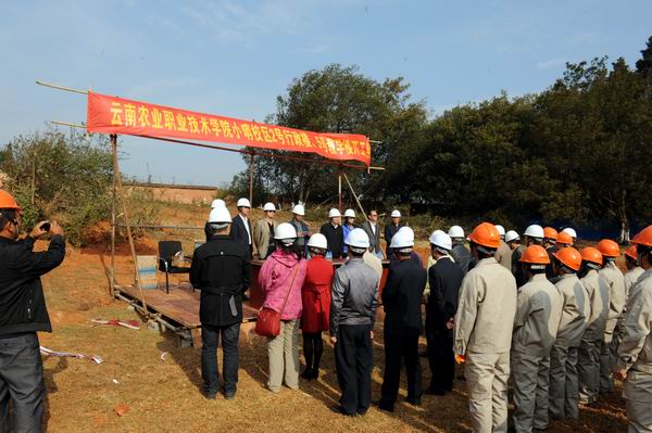 彭志远院长在致辞中强调,此次开工的项目是我院自行筹资一千多万来建设的两栋大楼——新行政办公楼、新教学楼,建筑面积共6200余平方米,我们要用好这笔钱把项目建设好!此项目按照有关招投标程序由成功投标的云南庞展建筑工程有限公司施工,由云南艺汇监理咨询有限公司对工程进行全程监理。工程按合同要求在五个月内完成,于今年8月竣工。此项目与去年底开工的学生公寓楼将以全新的面貌迎接下半年新生的到来!彭院长为此提出三点要求,一是要确保工程质量,把项目建设成为优质工程;二是树立安全第一的意识,确保施工安全;三是学院各部门紧密配合做好服务工作,使工程能够顺利按期完成。并预祝工程顺利竣工。