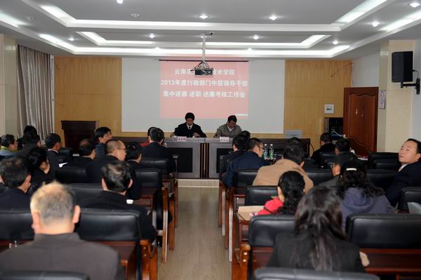 201416,我院2013年度中层领导干部述德述职述廉考核工作会在茭菱校区三楼会议室举行。党委书记崔金赋、李永忠院长等院领导,学院科级及以上领导干部、部分教职工代表参加大会。考核工作会由崔金赋书记主持。