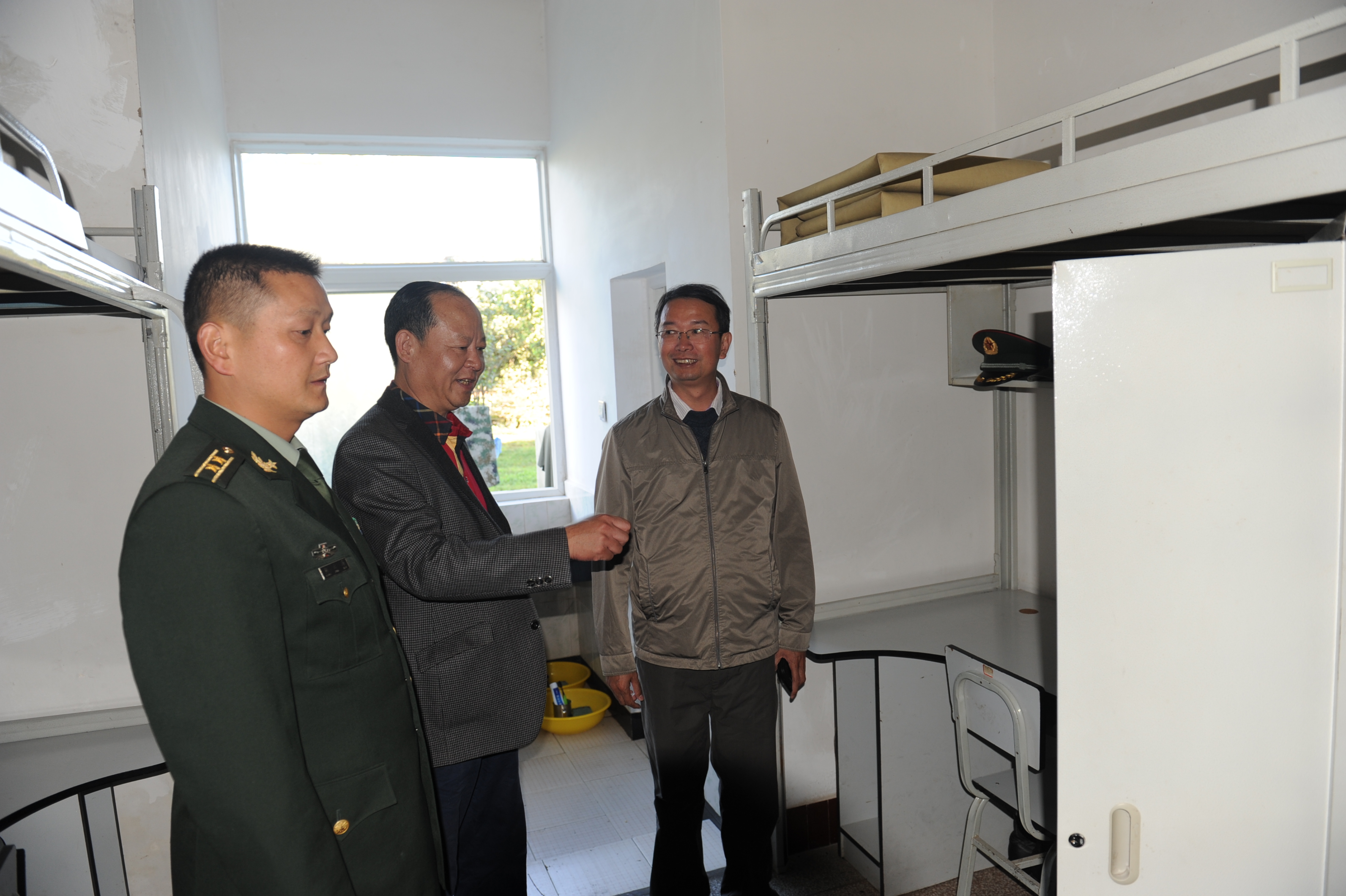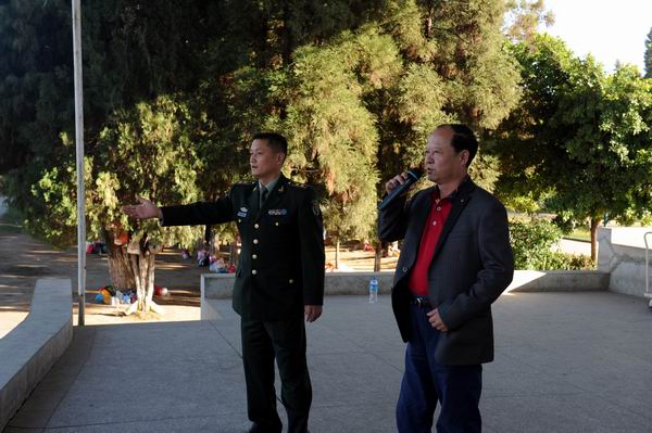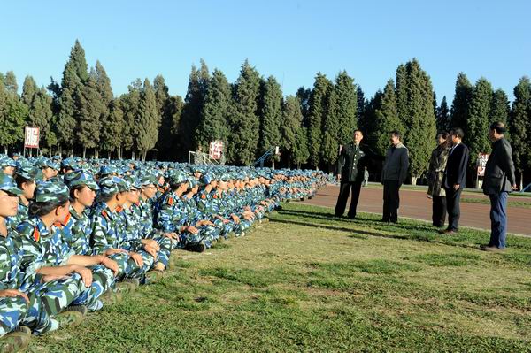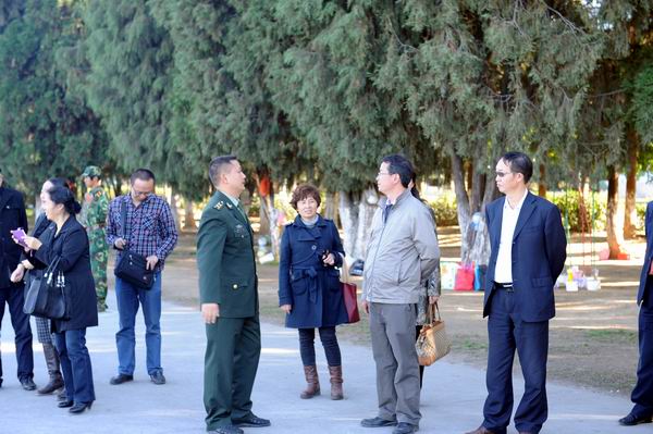 20131113,院长李永忠、副院长何明东、副院长赵莉、副院长俞浩、以及各系部党总支书记,在昆明民族干部学院一大队副大队长熊云海中校的陪同下,深入军训基地视察慰问驻训教师及参训学员并察看2013级学生军训情况。