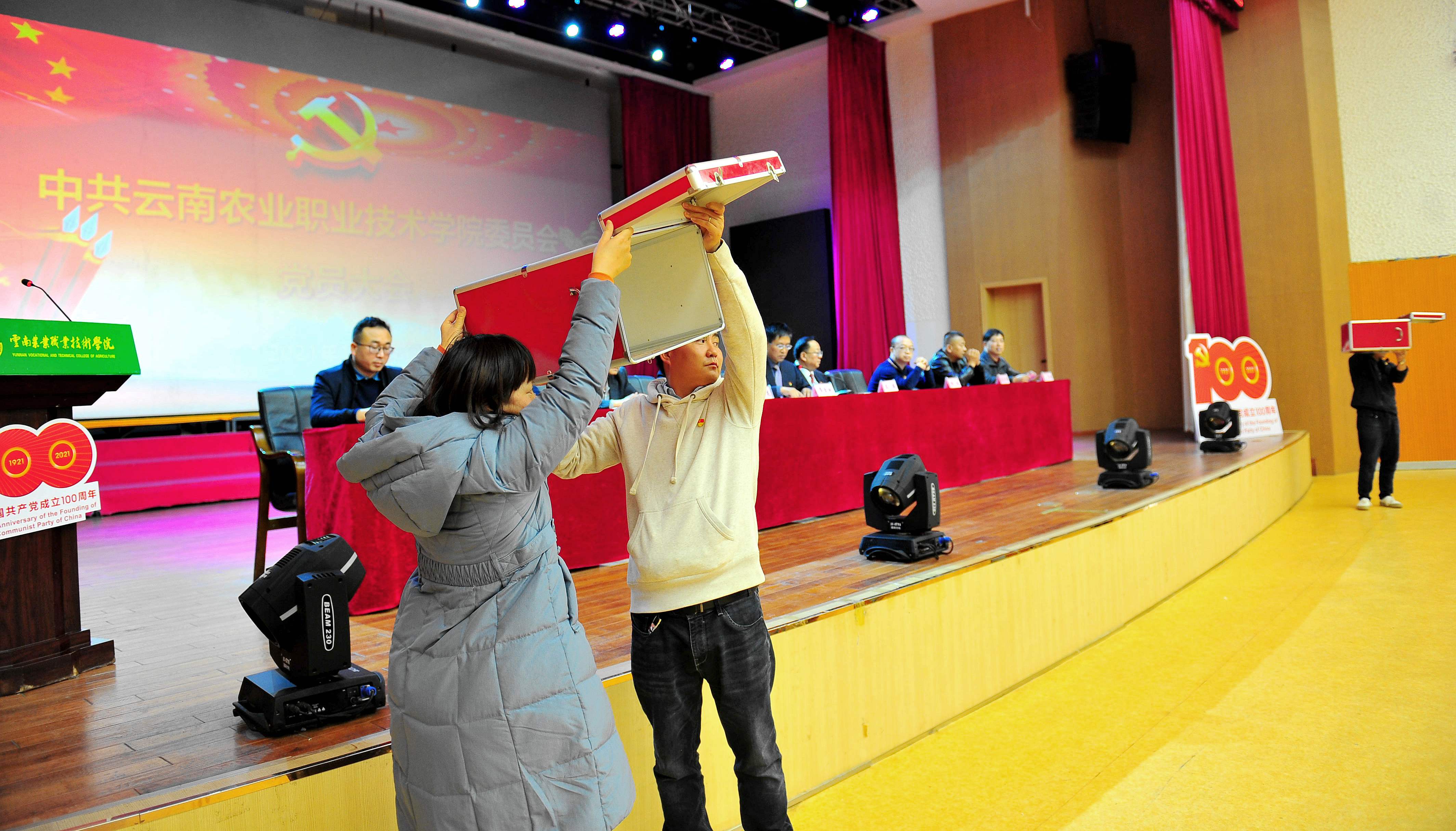 大会在全体同志起立齐唱中华人民共和国国歌/《义勇军进行曲》的歌声中拉开帷幕。正式选举前,大会全票通过《中共beat365在线唯一官网委员会党员大会选举办法(草案)》。大会主持人介绍省委教育工委原则同意出席中国共产党云南省第十一次代表大会代表候选人预备人选基本情况后,全票通过学院出席中国共产党云南省第十一次代表大会代表候选人预备人选,经到会党员集体酝酿,确定代表候选人。本次大会通过了总监票人和监票人名单。选举工作正式开始后,在监票人检查票箱,工作人员分发选票并销毁多余选票等流程后,采用无记名投票、差额选举的方式进行选举,与会党员认真填写选票,投上了自己的一票。