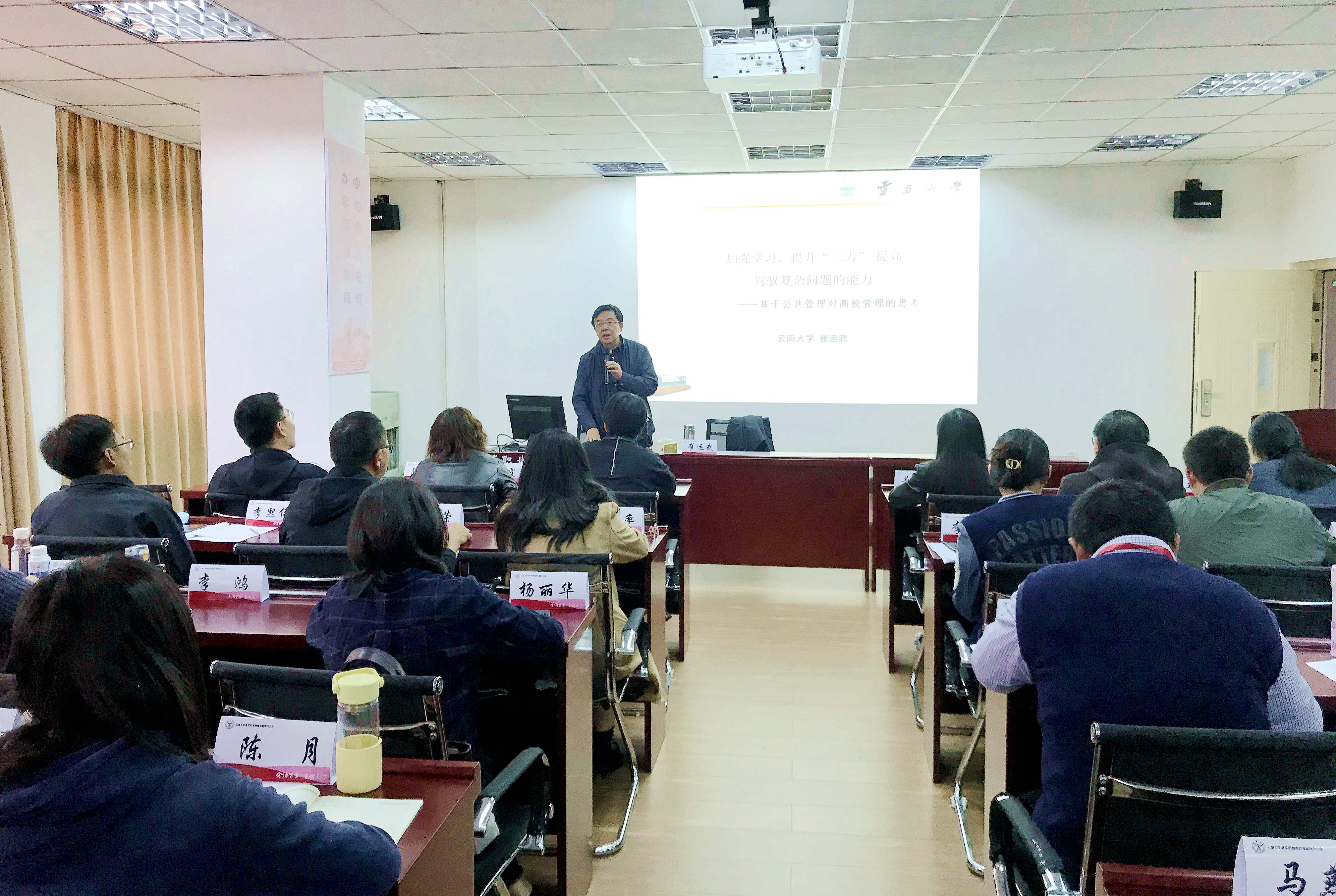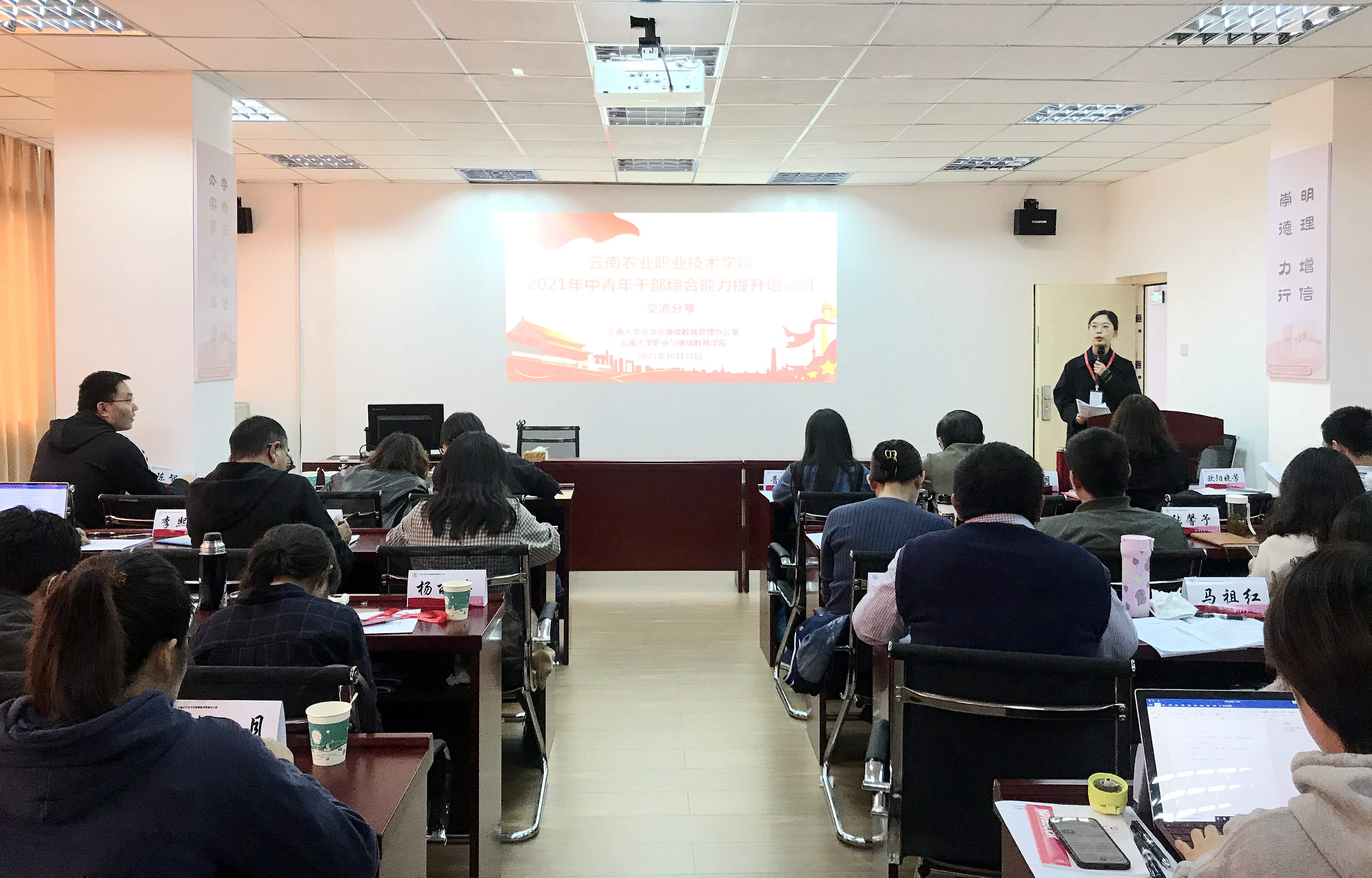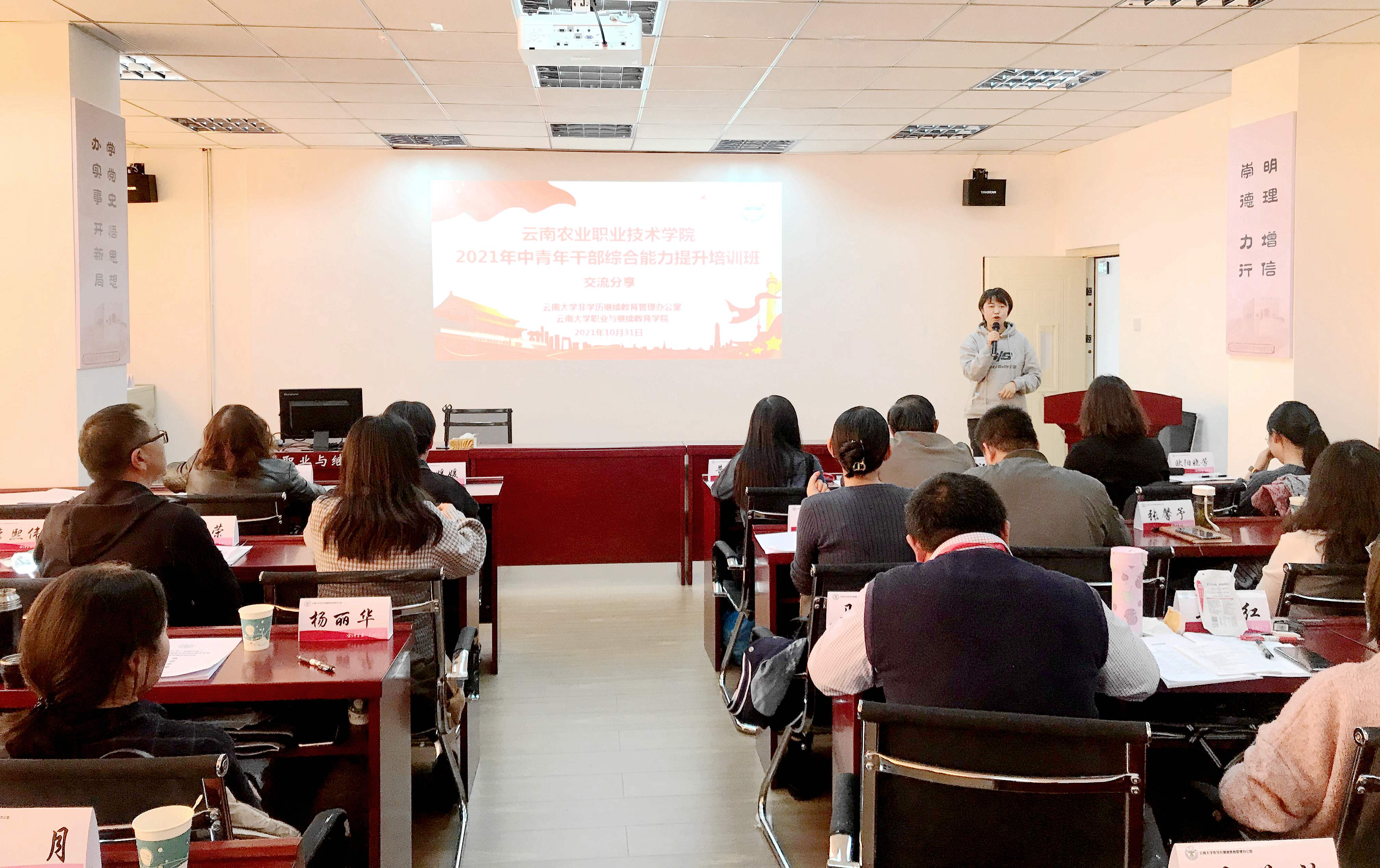 通知中心10月29至10月31日,学院第一届中青年干部综合能力提升培训班在云南大学东陆校区职业与继续教育学院成教楼顺利举办。本次培训的主要目的是努力建设一支忠诚干净担当实干的中青年干部队伍,为推动学院奋进新征程实现新作为提供坚强人才保障。
