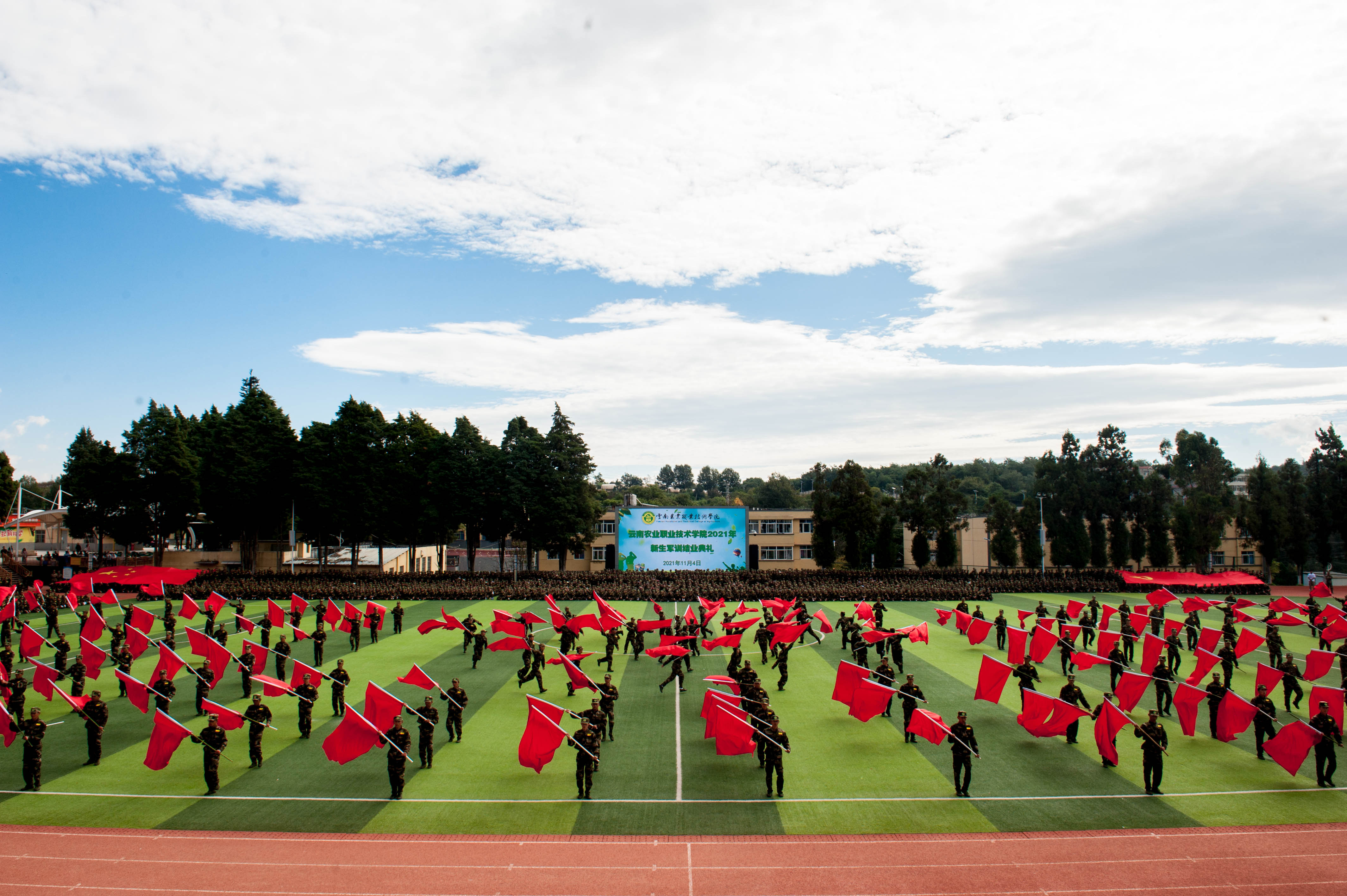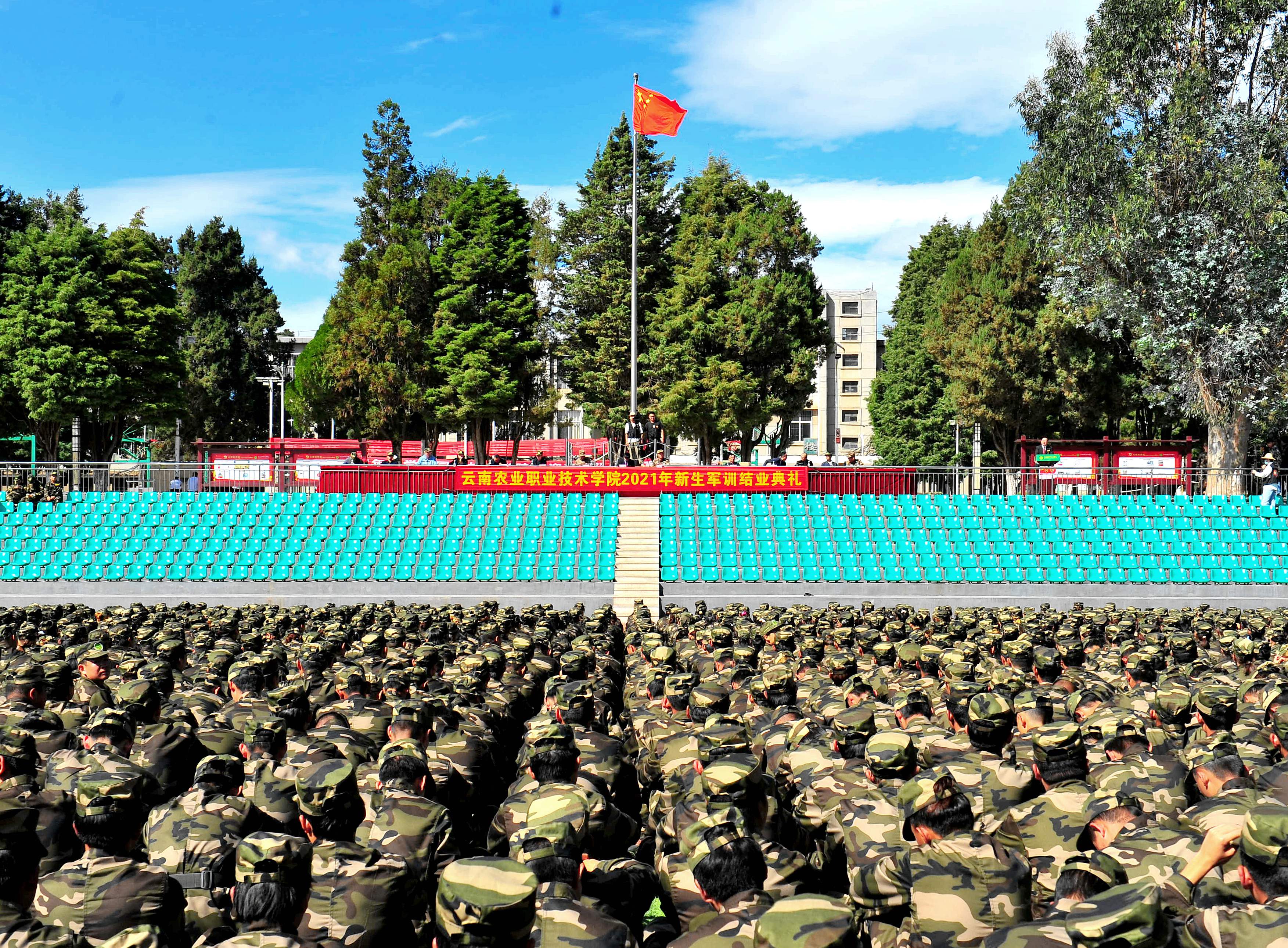 大会在参训新生合唱校歌《红土地上谱新章》中落下帷幕。十五天短暂的军旅生活至此结束,此次军训不仅提高了我院新生的政治素质、军事素质,使其掌握了基本的军事知识和技能,深化了国防观念和国家安全意识,而且培养了严明的组织纪律性和集体荣誉感,愿2021级新生能以严谨作风为准绳,以振兴中华为己任,把握青春,砥砺成才!(党委宣传部/文:叶妍琳/图:普仲凯、杨云/审核:杨筱莹/责任编辑:普仲凯)