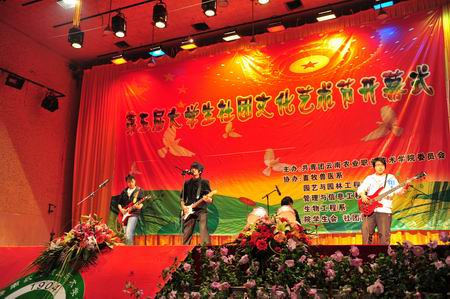 宣传部部长冯志宏向艺术节致贺词,学生工作处处长周诚宣布学院大学生艺术节开幕!随着Z·T乐队《还我蔚蓝》开场乐的奏响,社团文化艺术节在激昂的音乐声中拉开了序幕。藏族同胞一曲《洁白的哈达》仿佛把我们带到了万里以外的青藏高原,领略了那份豁达的高原情结;相声《说医学》更是将会场气氛带到了高潮,一浪高过一浪的笑声便是对表演同学的赞赏;一曲《天亮了》哀伤的曲调又将会场气氛拉进低谷......热烈的喝彩和掌声在会场此起彼伏,学生们的多才多艺在这里得到充分的发挥和展示。随着《七月火把节》舞步乐曲的终止,社团文化艺术节开幕式晚会帷幕徐徐落下。