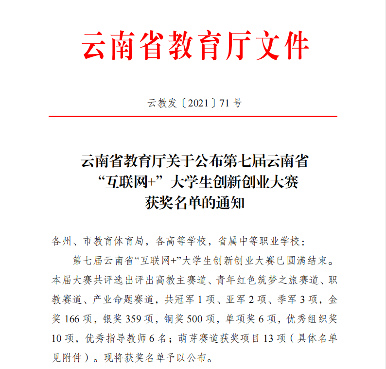 下一步,学院将更加珍惜荣誉,再接再厉,按照云南的“三个定位”和“三张牌”的发展要求,聚焦职业教育助力巩固拓展脱贫攻坚成果与乡村振兴战略有效衔接的部署,继续推动创新创业工作的高质量开展,努力为地方经济发展培养更多具备创新意识、掌握创业技能的高素质技术技能型人才。(创新创业学院供稿 /文、图:李一源//审核:杨筱莹/责任编辑:叶妍琳)