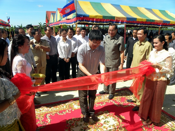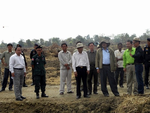 柬埔寨王国副首相高金然在翁恩省长陪同下到工地视察