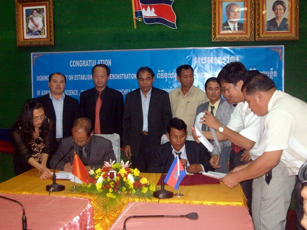 根据省政府安排,该项目由云南省农业厅主管,beat365在线唯一官网具体负责组织实施。经前期赴柬实地调研准备,李纪恒省长2012年4月5日再次出访柬埔寨时,由省农业厅张玉明厅长与柬埔寨班迭棉吉省农业厅厅长签订了《中华人民共和国云南省与柬埔寨王国班迭棉吉省关于建设农业科技友谊示范园的框架协议》,明确了建设的宗旨、名称、地点、面积及内容、执行单位、职责义务、后续管理等内容。项目投资概算500万元人民币,选址在班迭棉吉省马莱区托坡罗乡桑特费普村,占地面积10.7公顷。