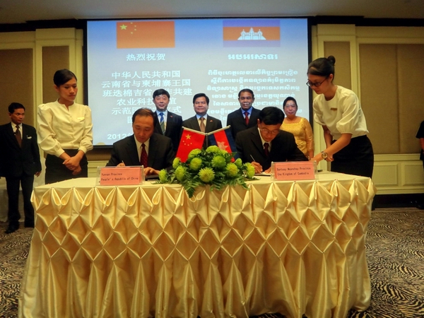 云南省农业厅张玉明厅长与班迭棉吉省农业厅厅长签订框架协议