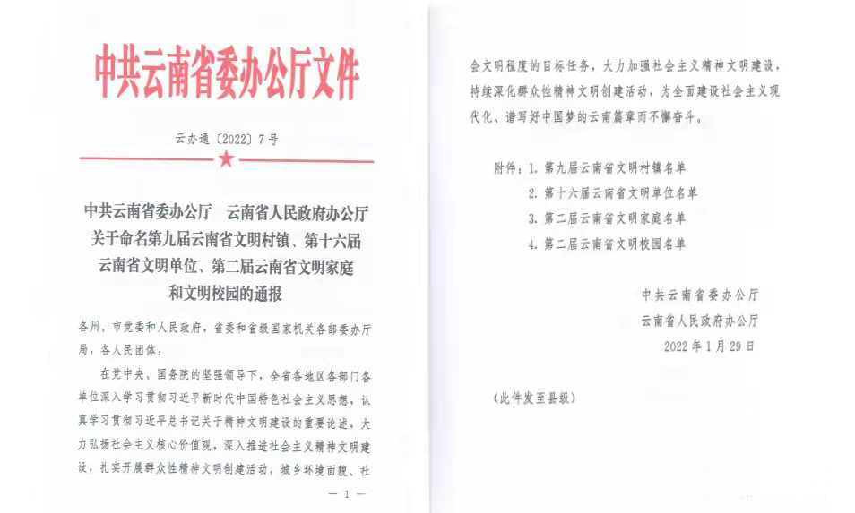 通知中心近日,中共云南省委办公厅、云南省人民政府办公厅下发了《关于命名第九届云南省文明村镇、第十六届云南省文明单位、第二届云南省文明家庭和文明校园的通报》(云通办〔2022〕7号文件),beat365在线唯一官网入选第二届云南省文明校园名单。